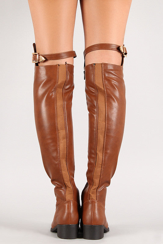 Elastic Panel Buckle Riding Over-The-Knee Boots