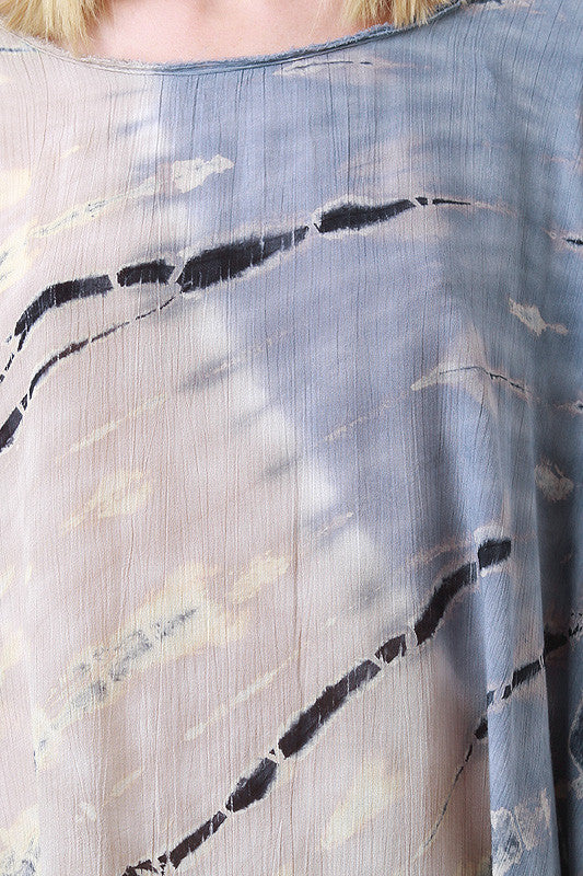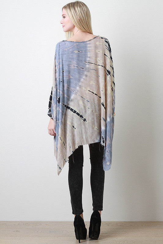 Featuring lightweight tie-dye top , scoop neckline, dolman sleeves, and asymmetrical sharkbite hem. Accessories sold separately. Made in U.S.A. 100% Rayon.