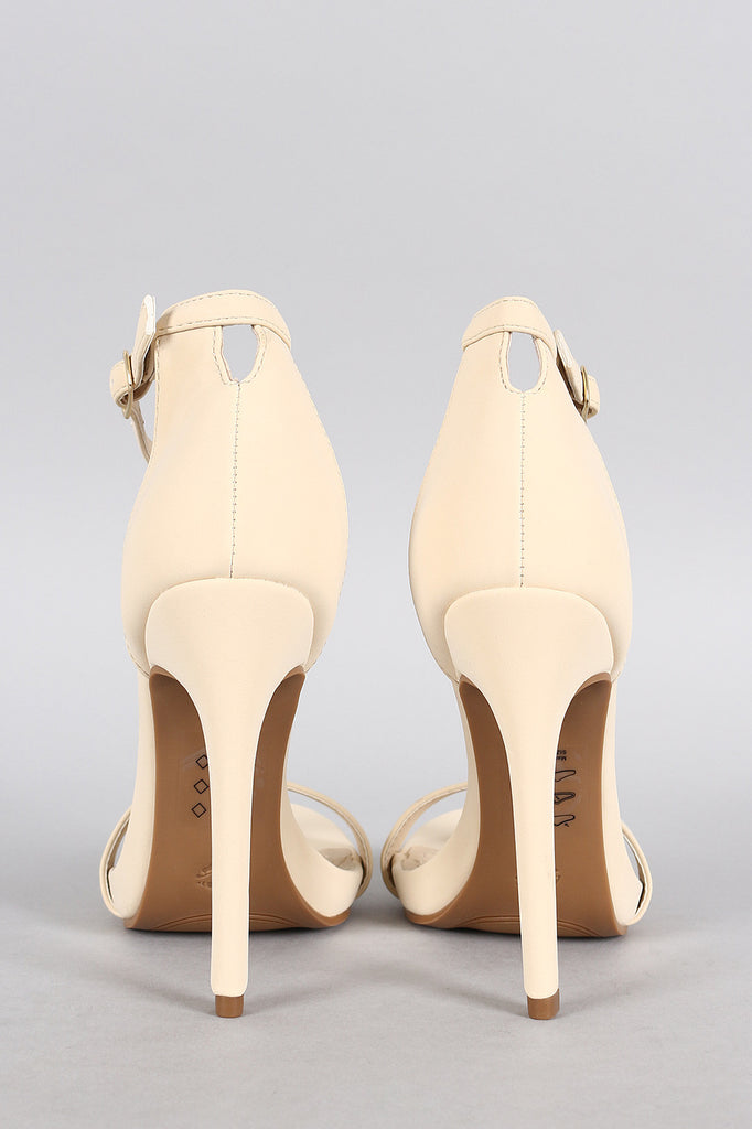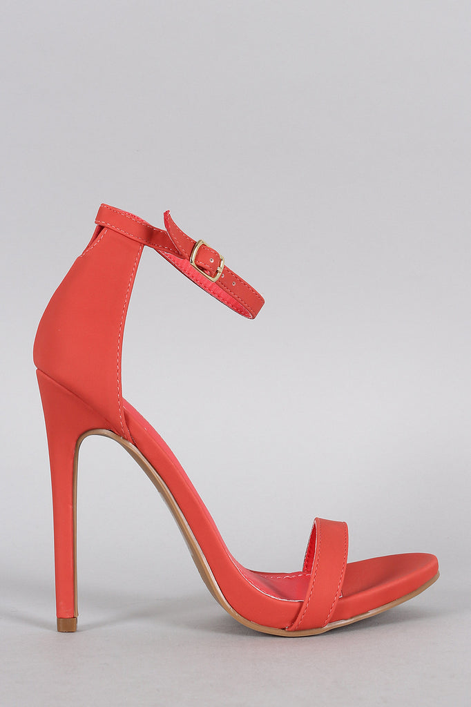 Description This classic open toe box with a single strap across the vamp. Features an ankle strap adjustable closure. Finished with a rear back closure that features a cute cutout. Designed with summer colors.