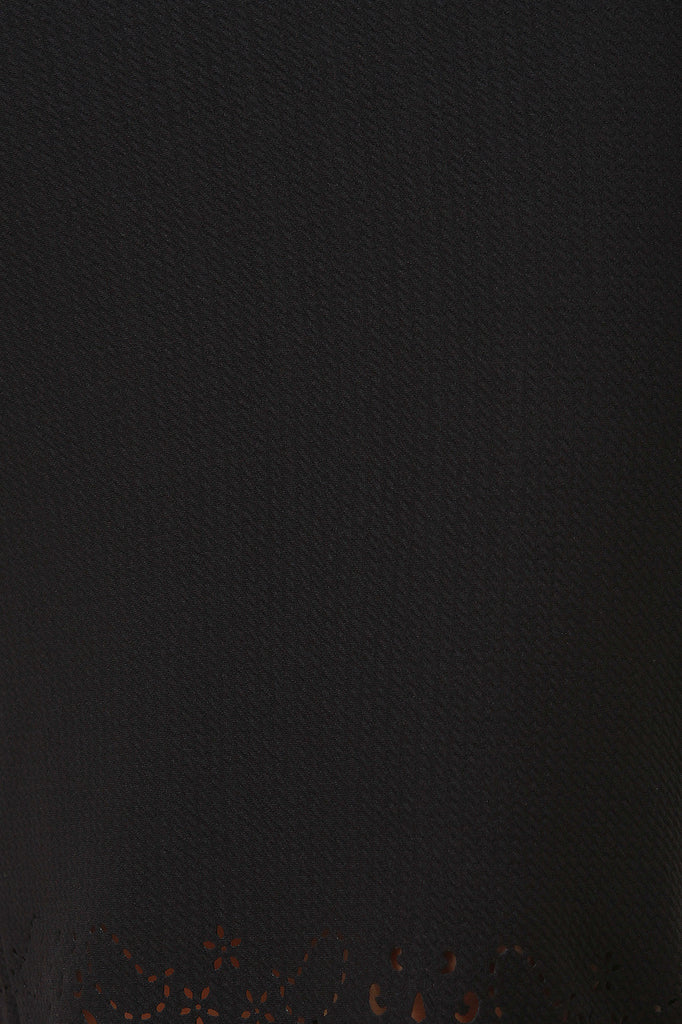 This sleeveless dress features textured stretch knit, turtleneck, back zipper closure, midi length, and finished with floral pattern cutout at hem. Accessories sold separately. Made in U.S.A. 96% Polyester, 4% Spandex.