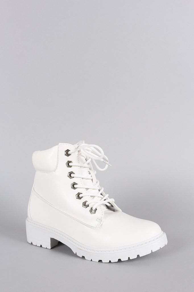 Round Toe Lace Up Lug Sole Work Ankle Boots