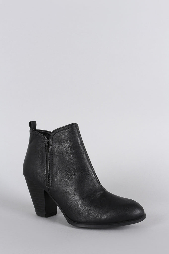Qupid Almond Toe Heeled Cowgirl Ankle Boots
