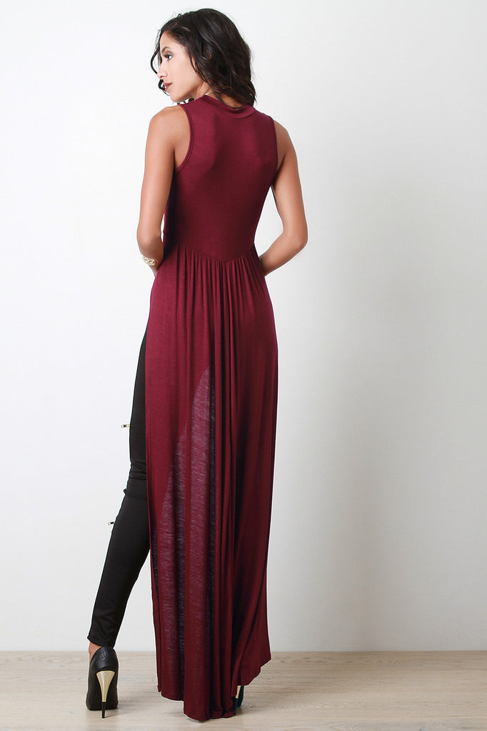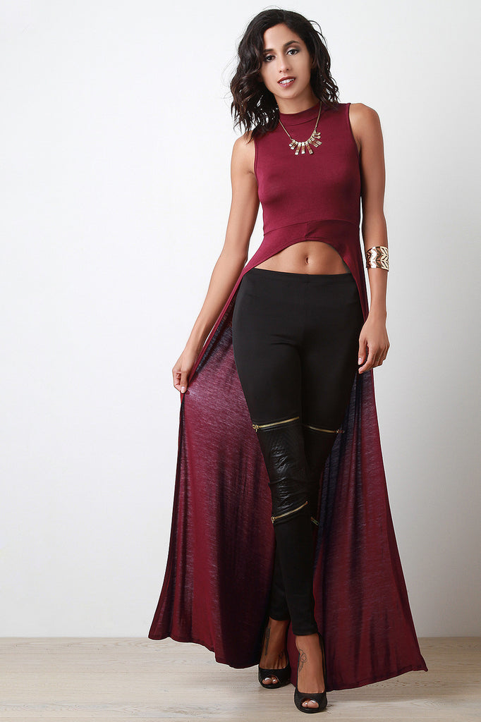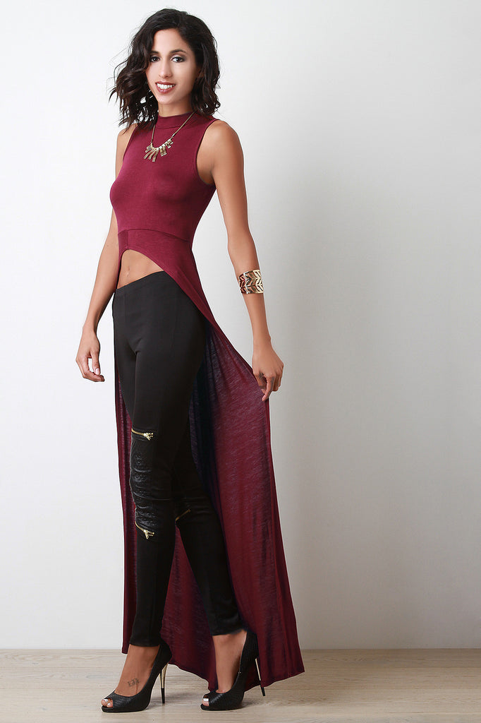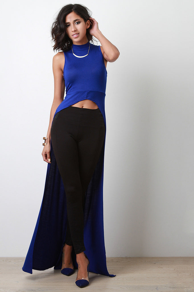 High-Low Sleeveless Mock-Neck Maxi Top