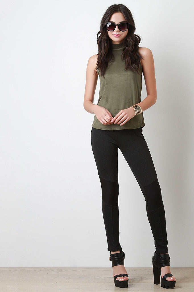 This lightweight top features a mock neck, sleeveless design, and stitching accents. Accessories sold separately. Made in U.S.A. 93% Polyester, 7% Spandex.