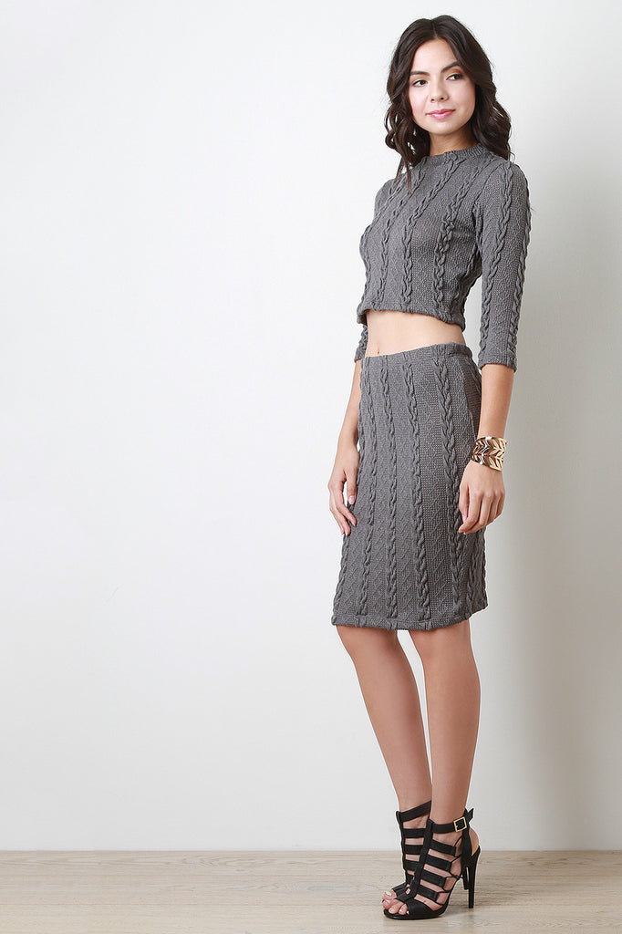 This top is crop top bodice with long sleeves and a mock neck. It is sweater silhouette. Accessories sold separately. 100% Rayon.