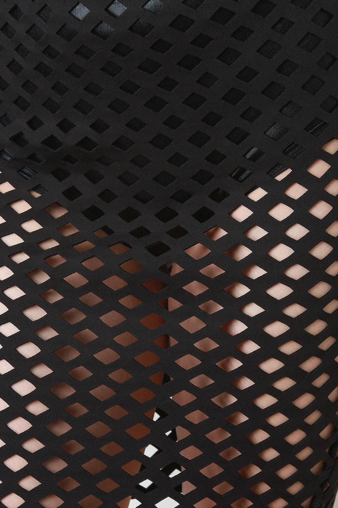 Description This semi-sheer scuba knit pencil skirt features a high waisted elasticized band, stretchy fit, and laser cut construction. Underlay not included. Accessories sold separately. 95% Polyester, 5% Spandex.