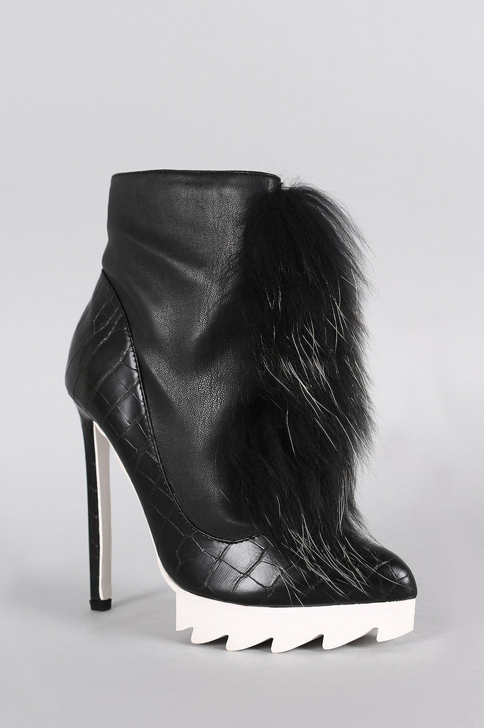 Description These daring lug sole platform and wrapped stiletto heel. Finished with cushioned insole, soft interior lining, and side zipper closure for easy on/off.