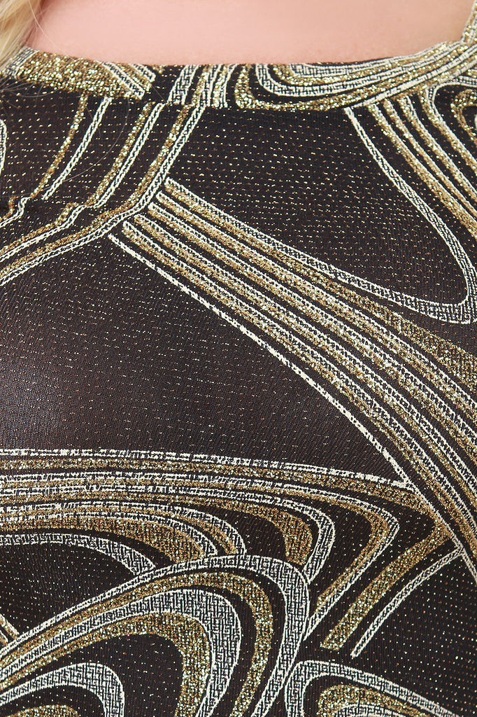 Description This midi dress features stretch knit, wavy glitter pattern throughout, round neckline, and long sleeves. Accessories sold separately. Made in U.S.A. 86% Nylon, 9% Metallic, 5% Spandex.