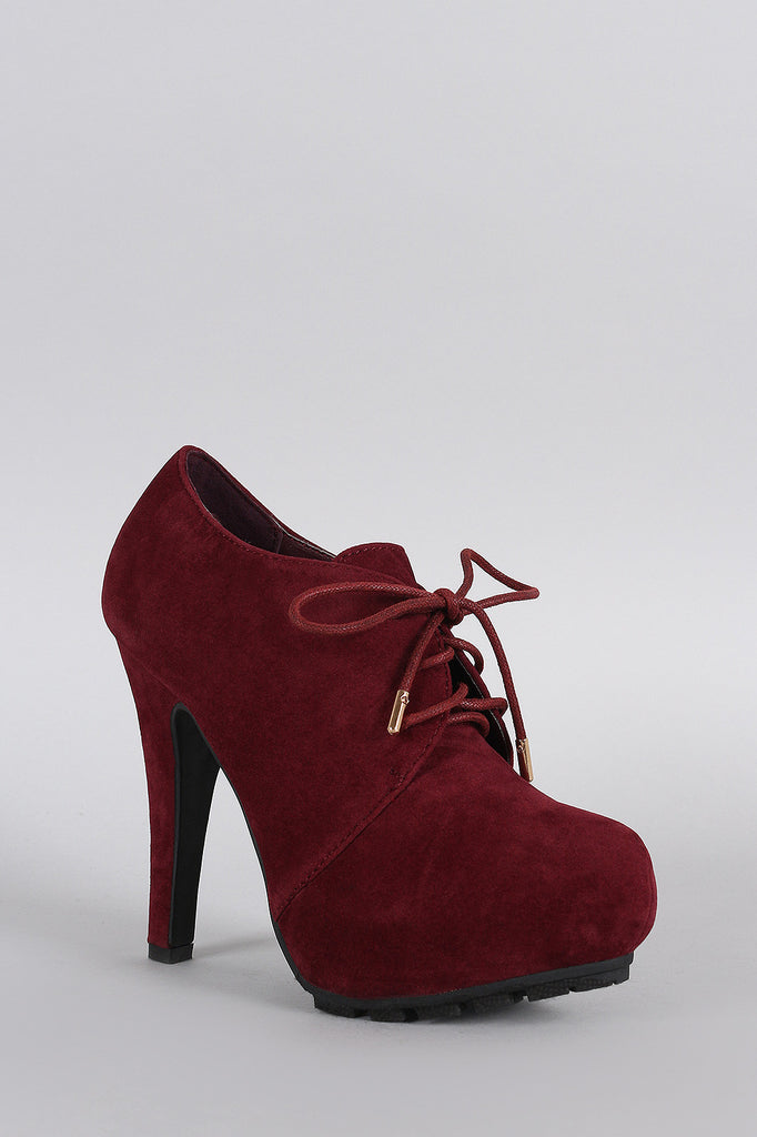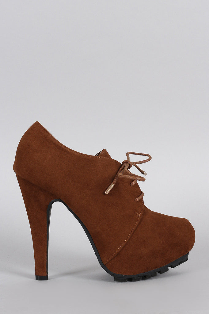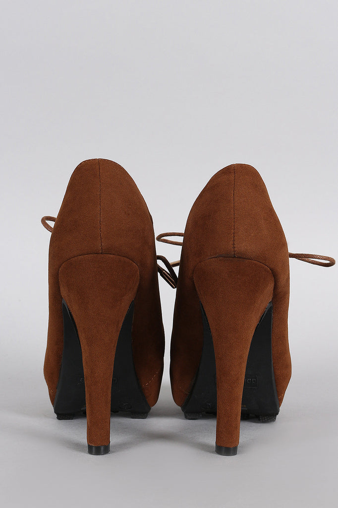 Dollhouse Almond Toe Lace Up Oxford Hidden Platform Heeled Booties