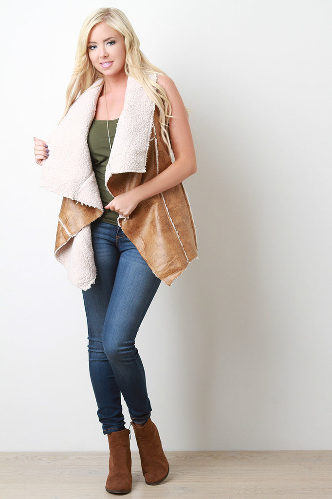 A soft faux shearling interior, and an open front with a handkerchief hemline. Accessories sold separately. 100% Polyester.