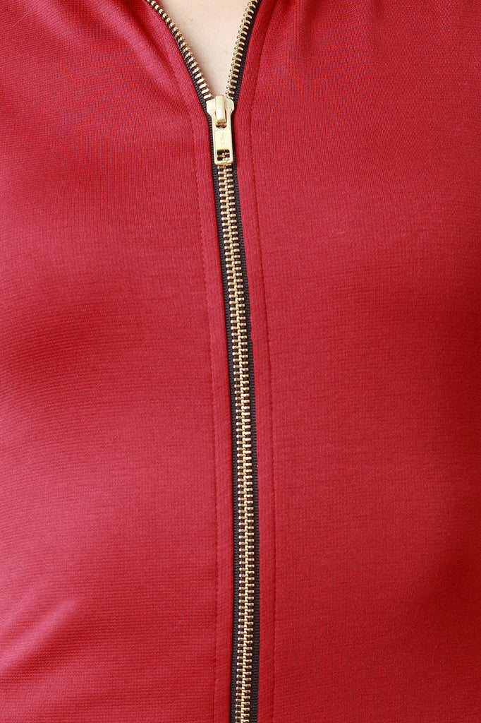 Description This midi dress features jersey knit, zip-up front, high neckline, and sleeveless construction. Accessories sold separately. Made in U.S.A. 78% Polyester, 19% Rayon, 3% Spandex.