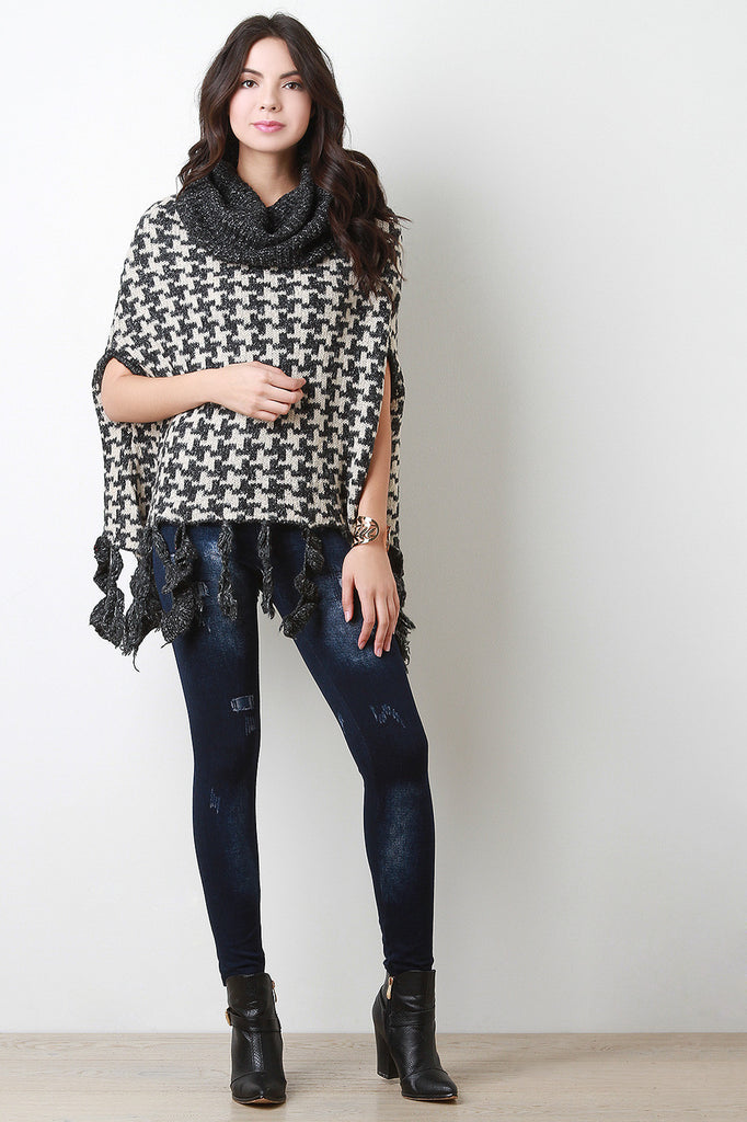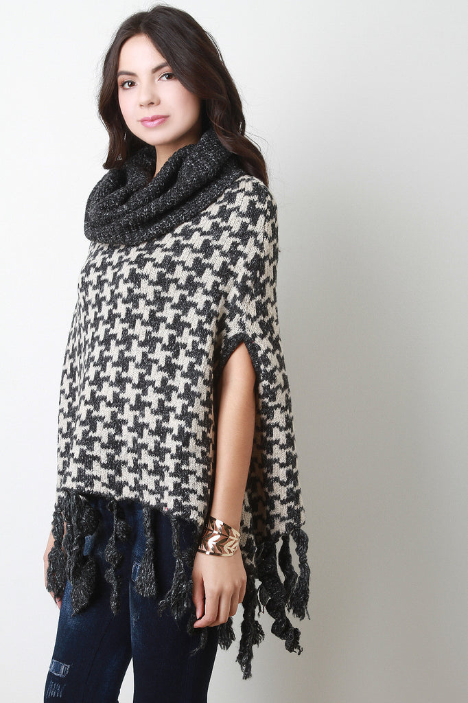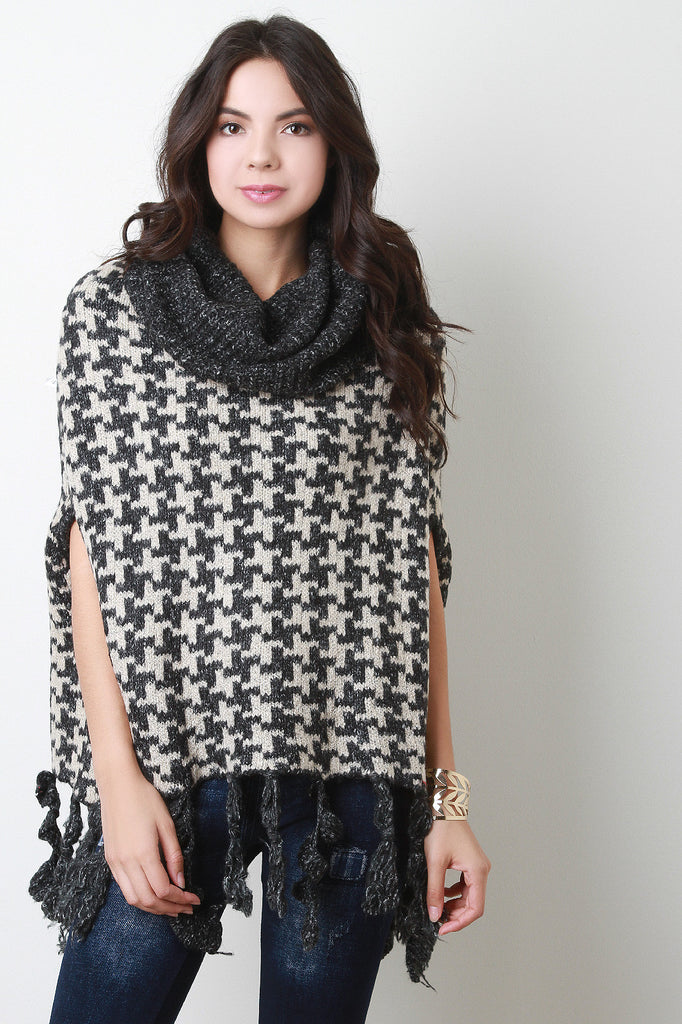 Houndstooth Cowl Neck Knit Cape